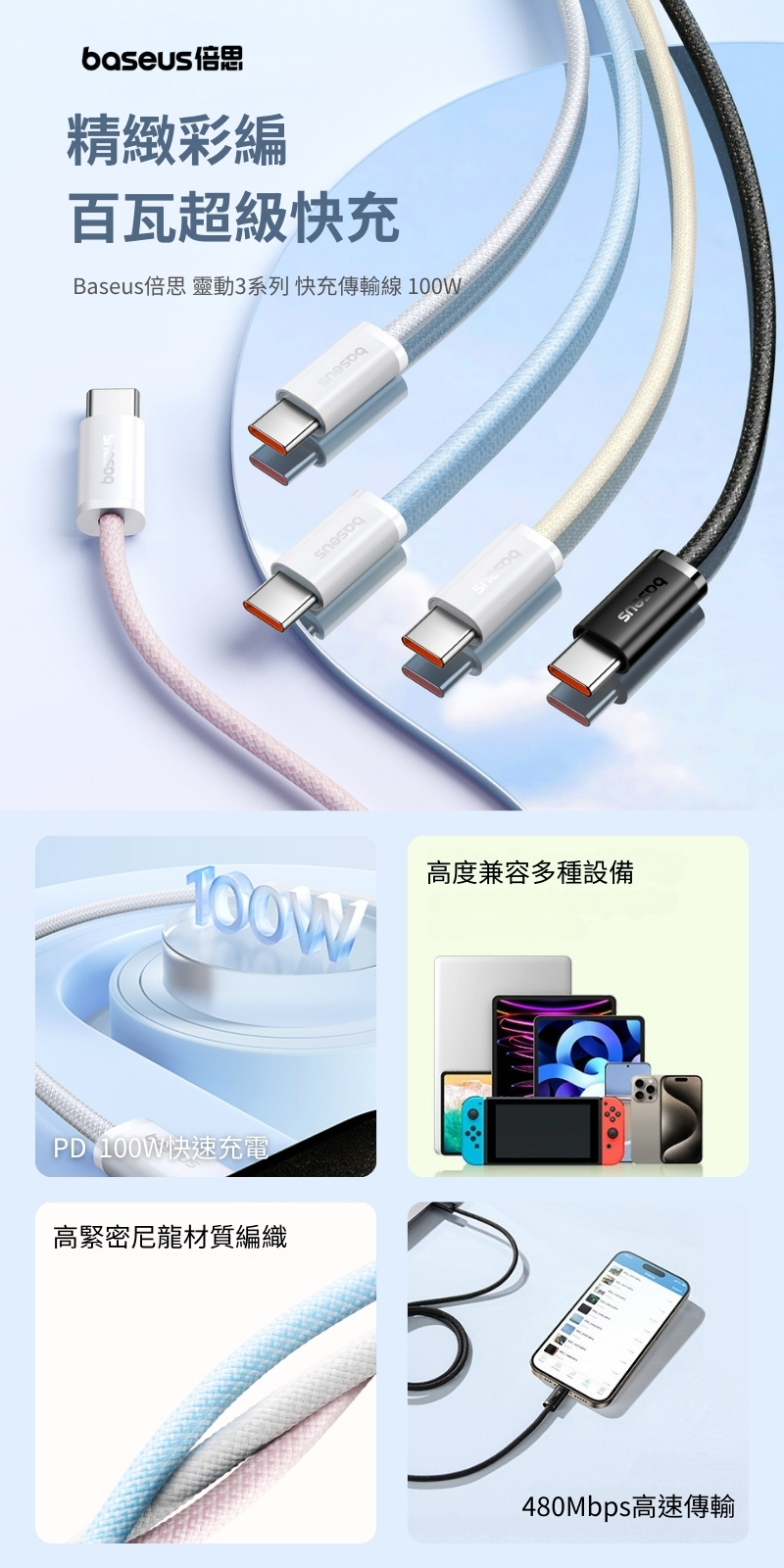 ✨【100W快速充電數據線】
