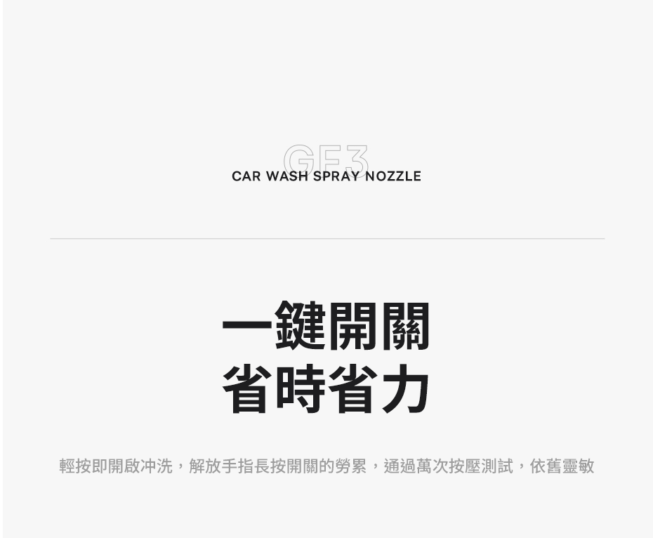 輕按即開沖洗,解放手指常按開關疲勞,通過萬次測試,依舊靈敏