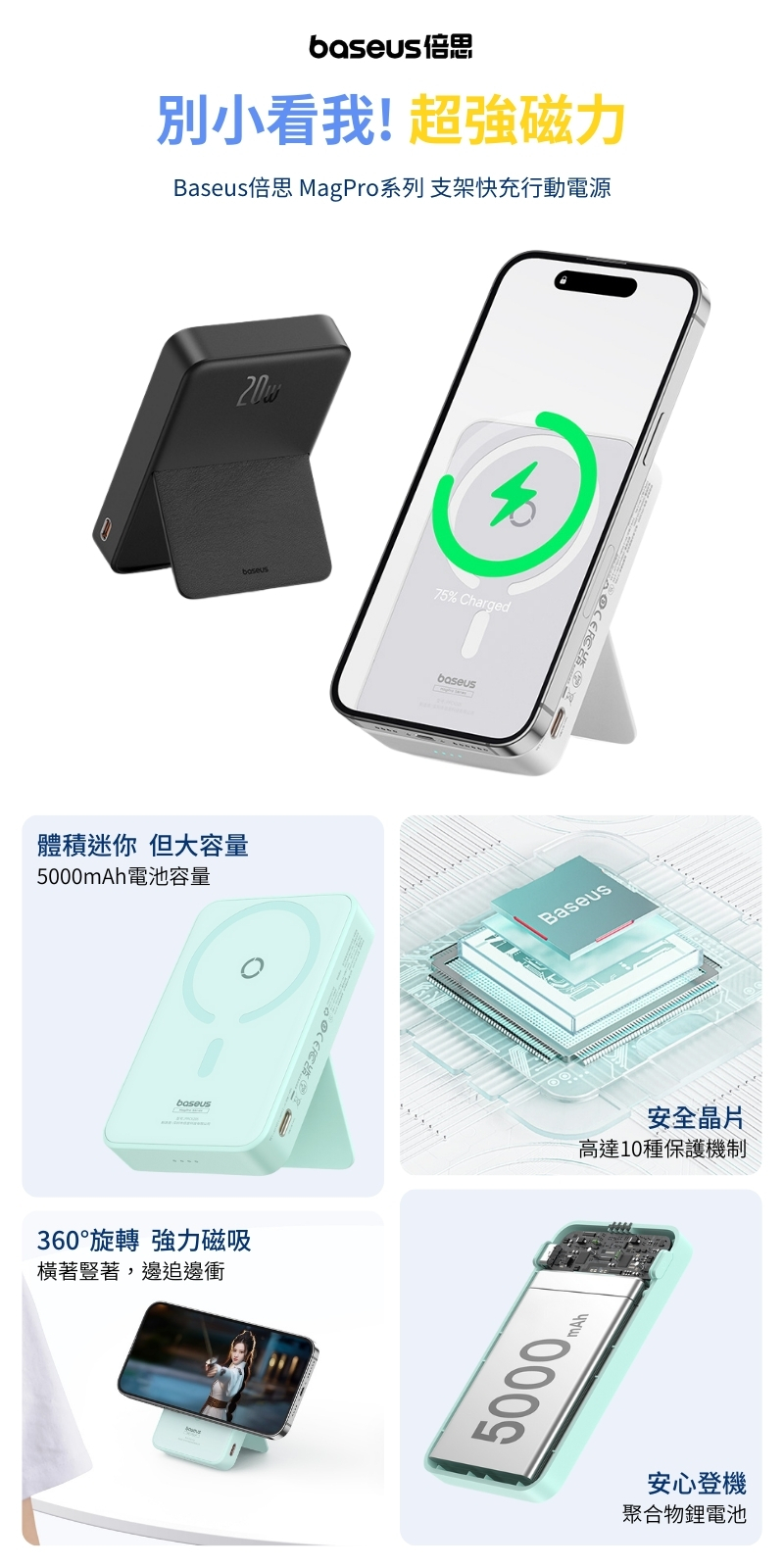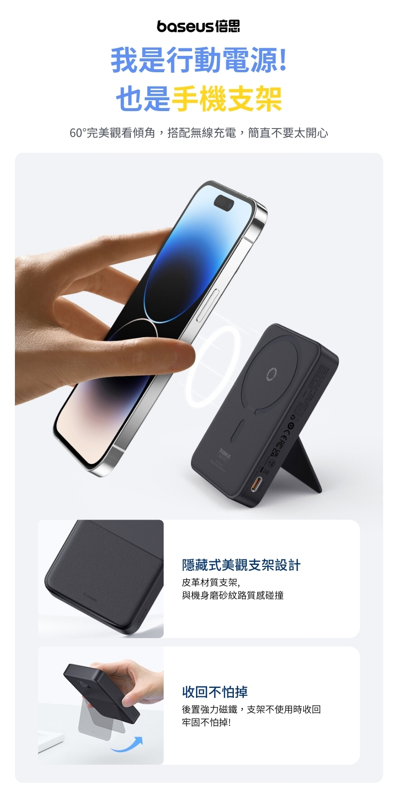 ✨無線充電解放雙手,超強吸力,是行動電源也可以是追劇支架