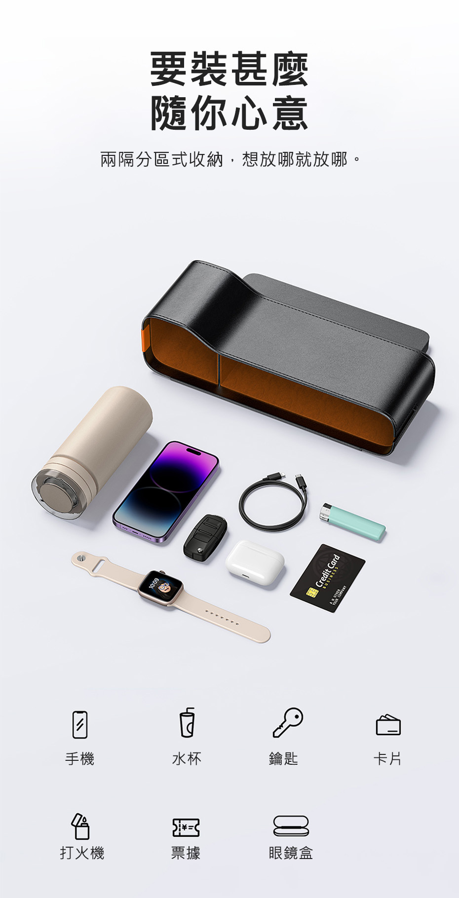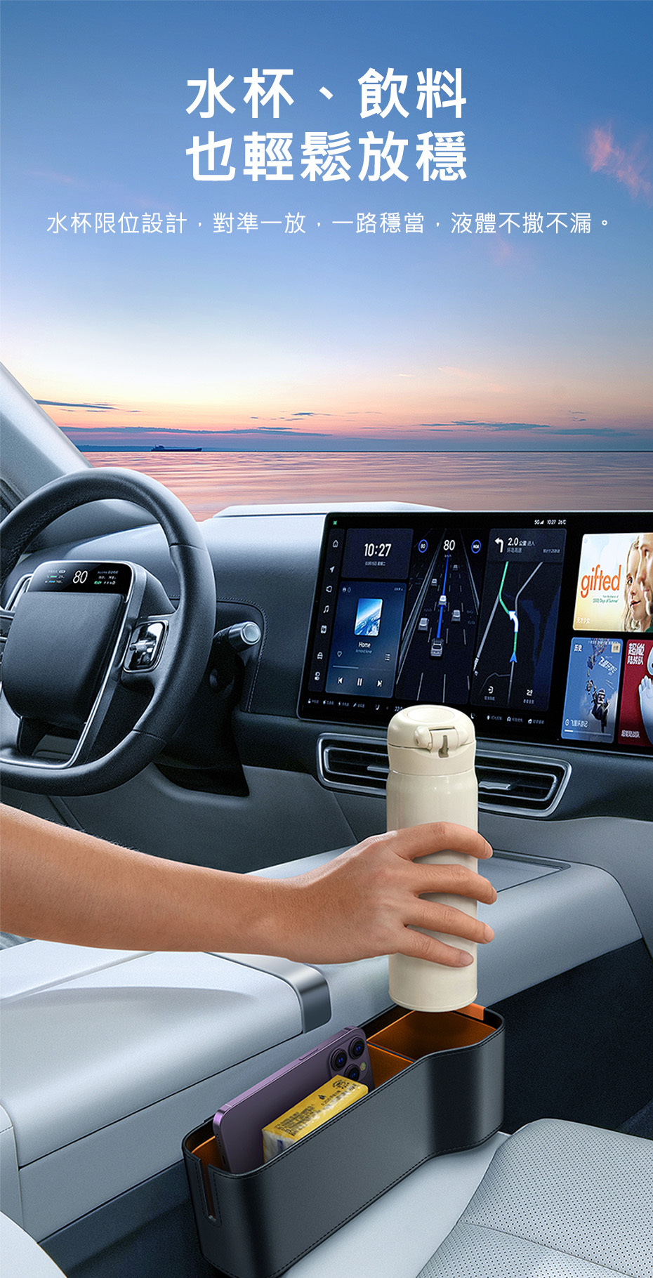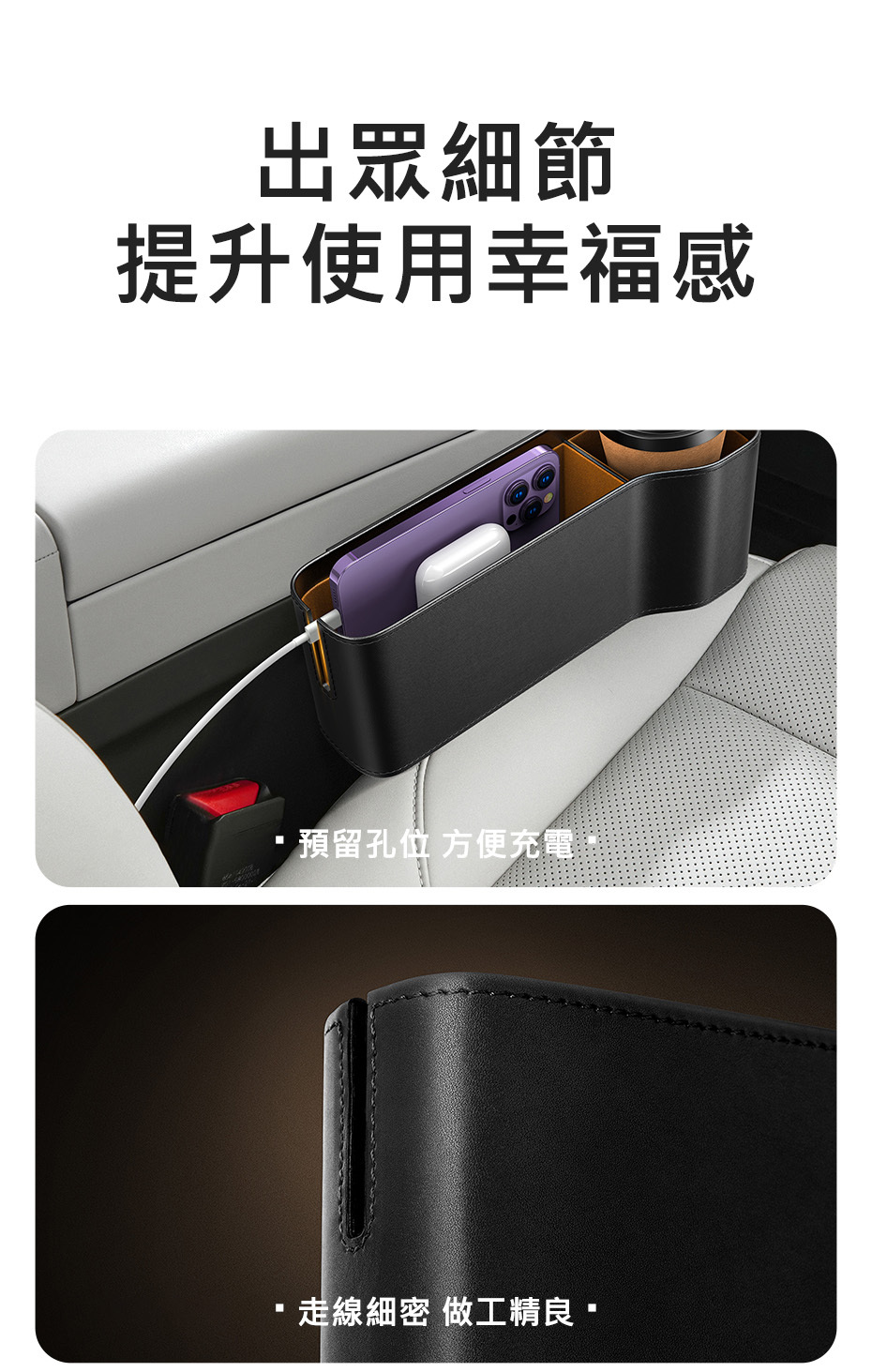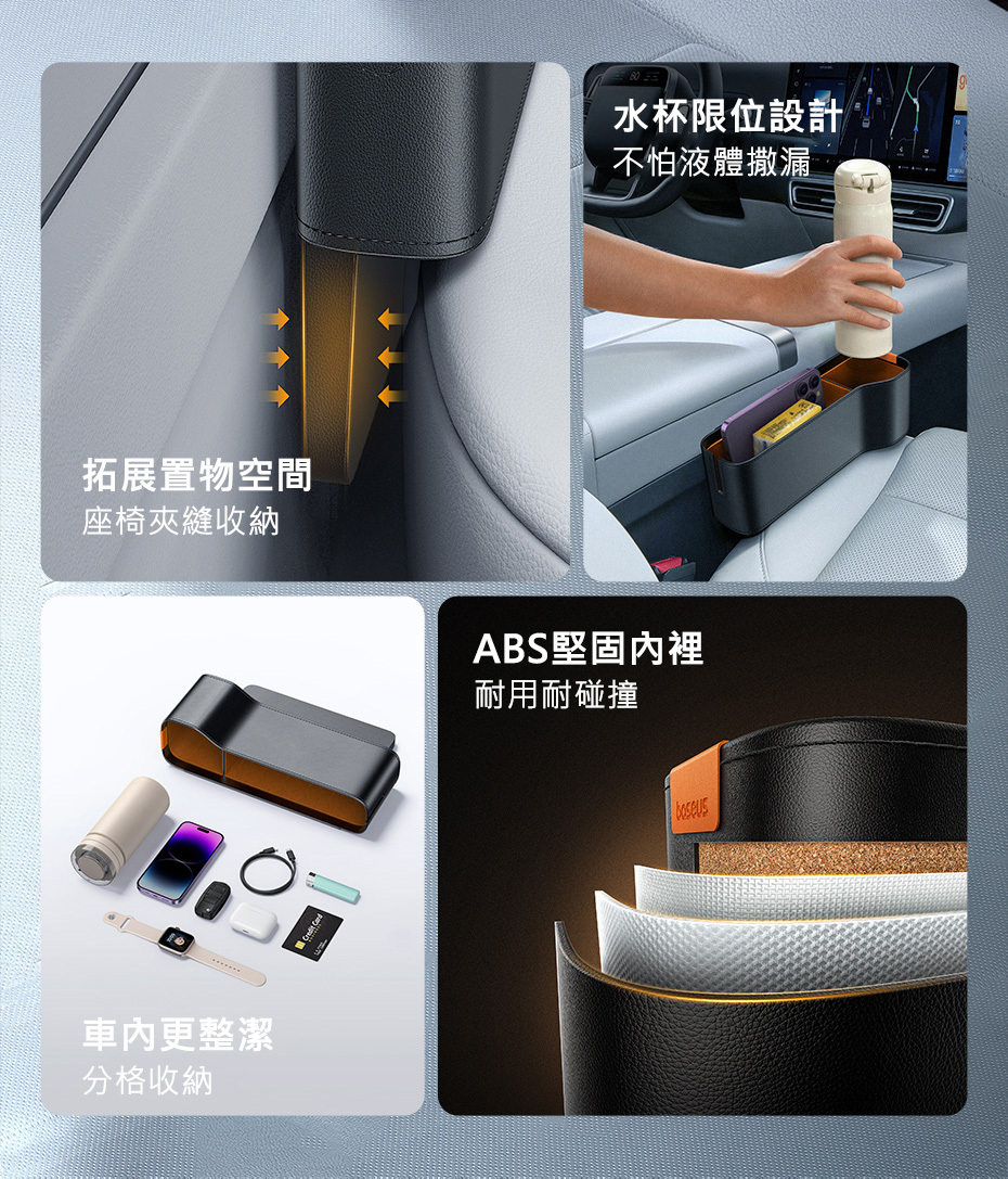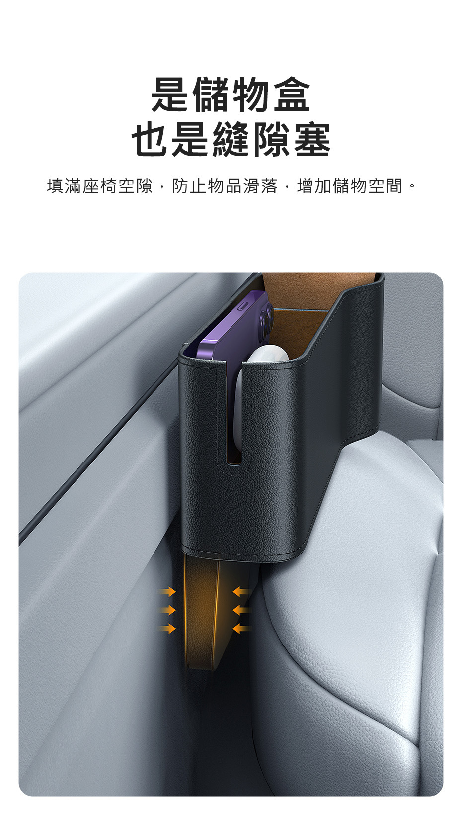 填滿座椅空隙,防止物品滑落,增加儲物空間
