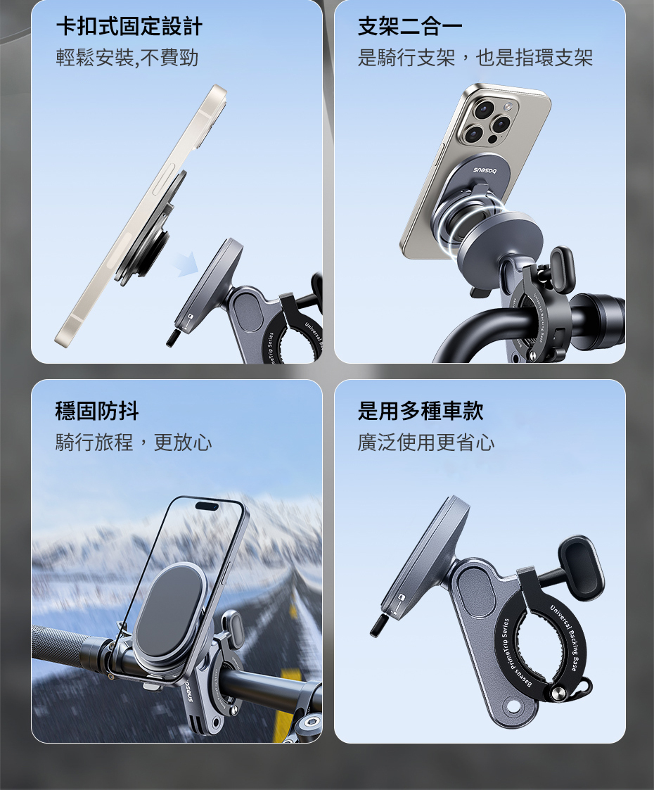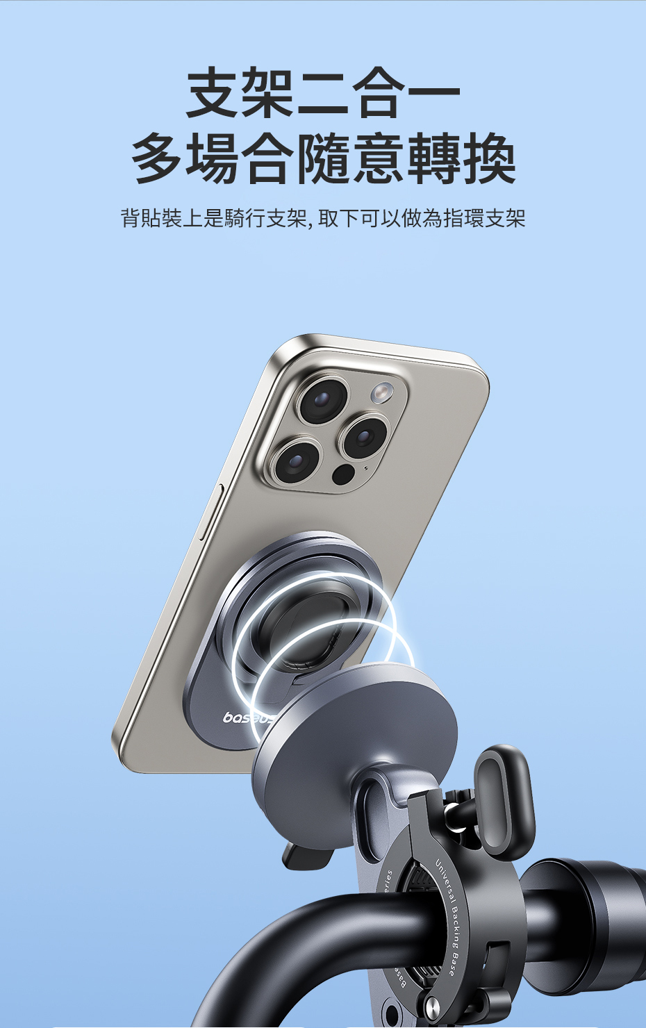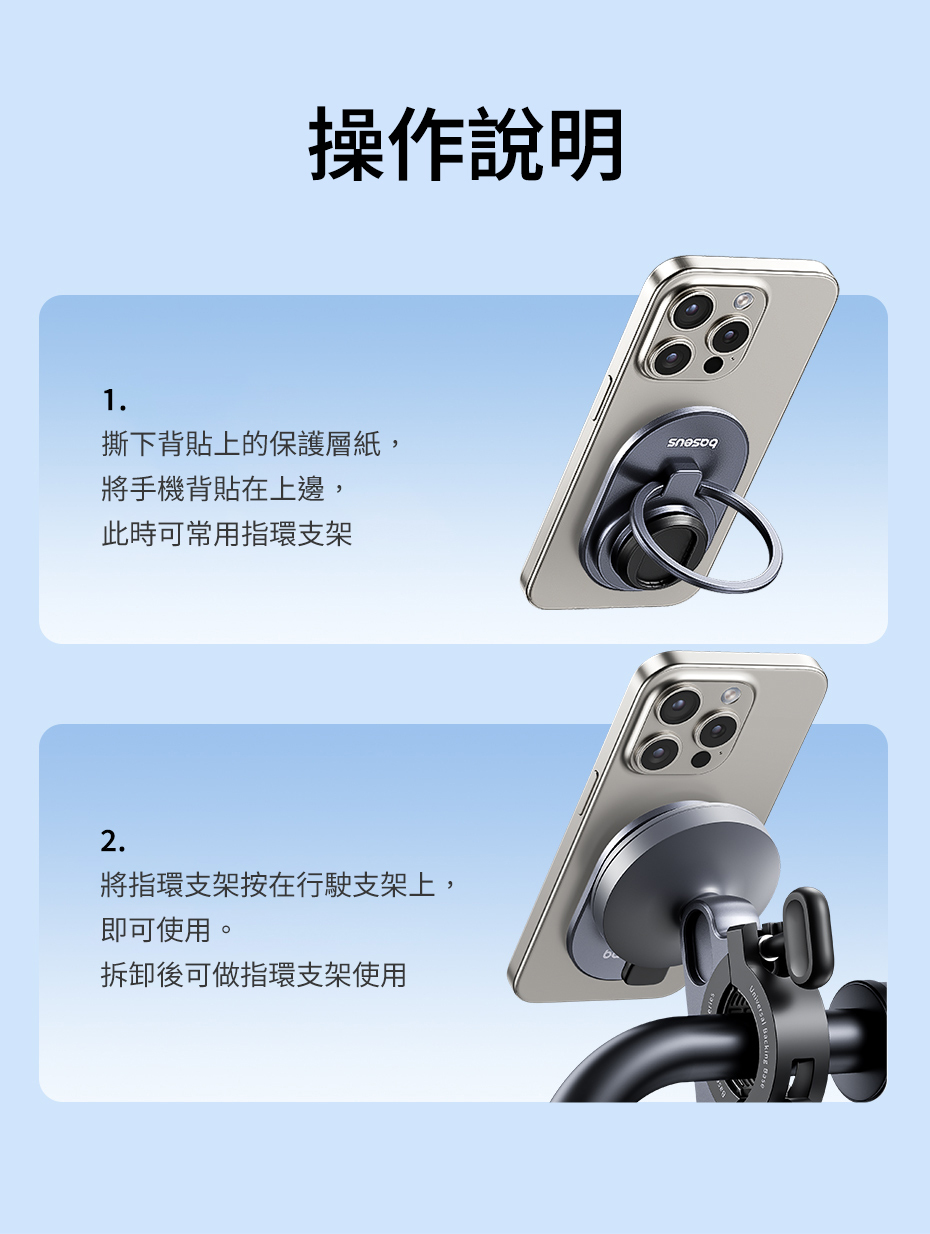 背貼裝上是騎行支架, 取下可以做為指環支架