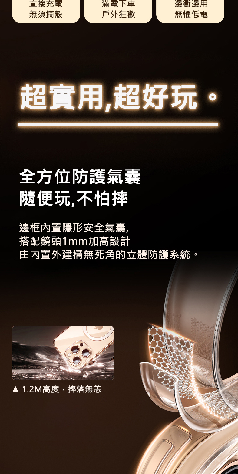 全方位的防摔氣囊防護
