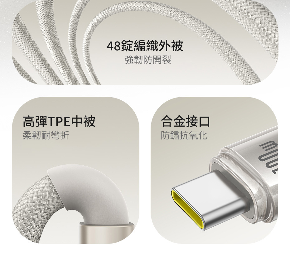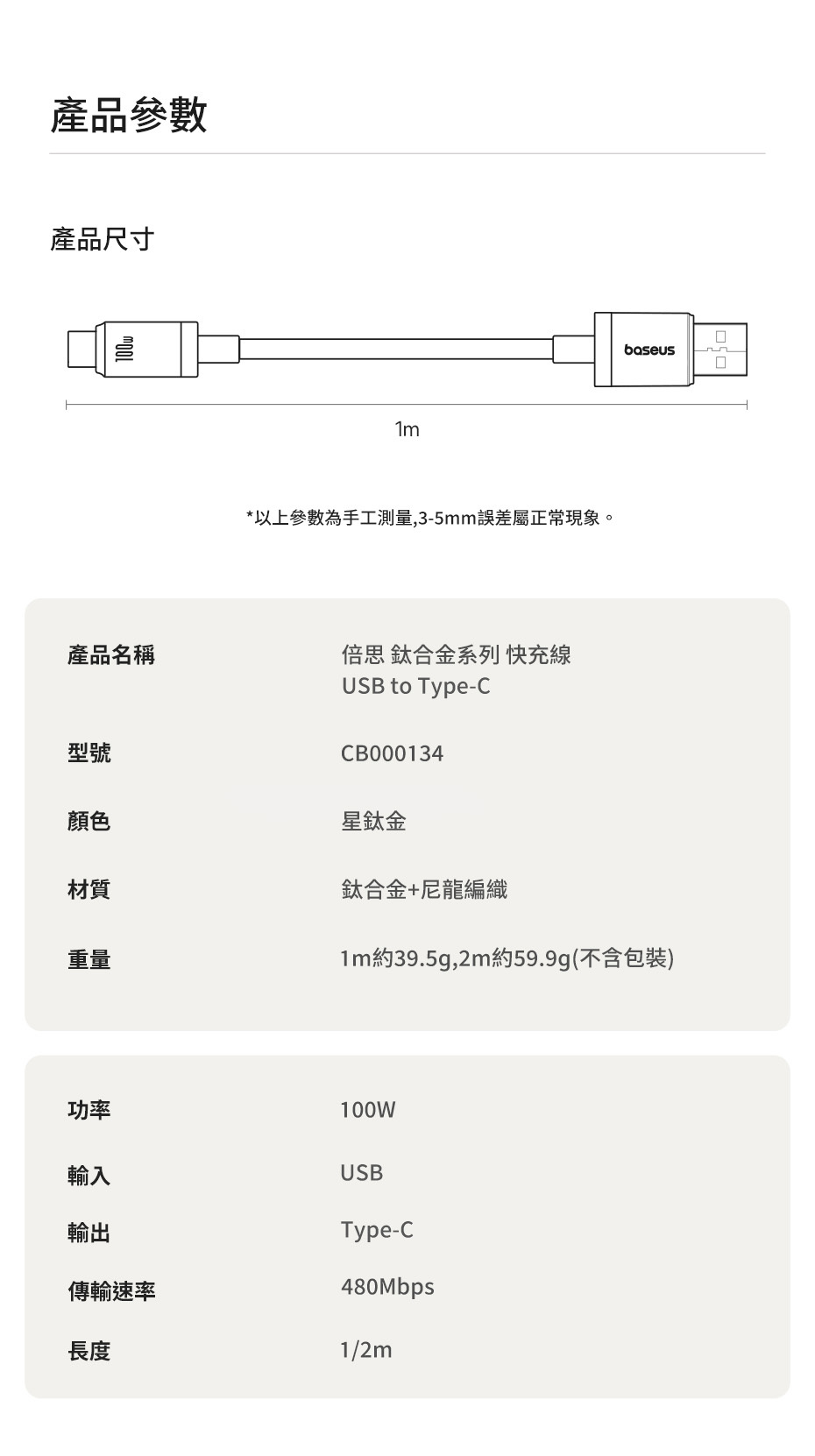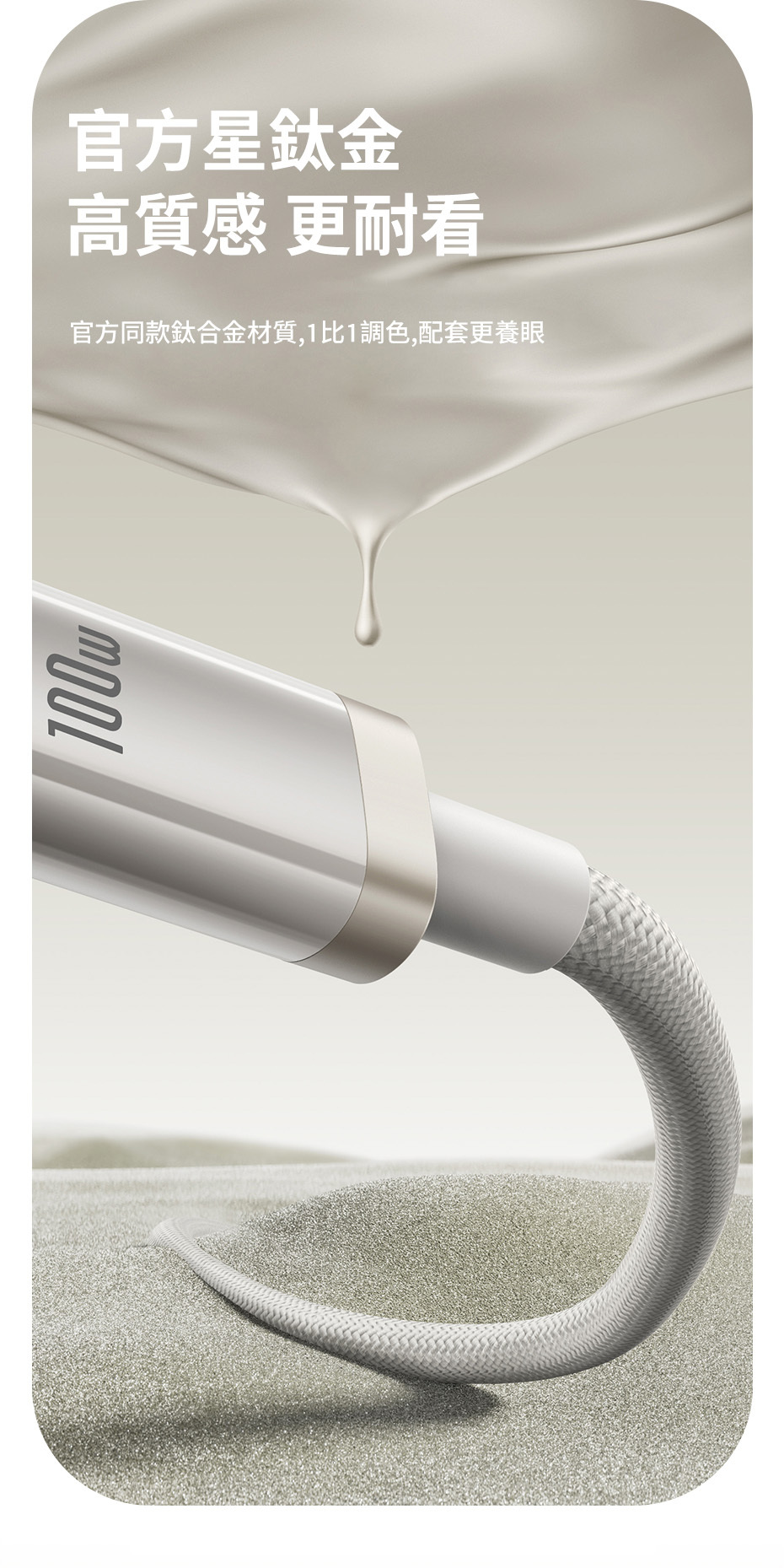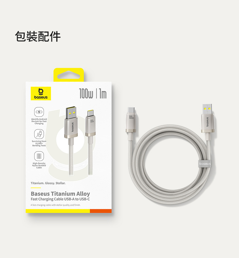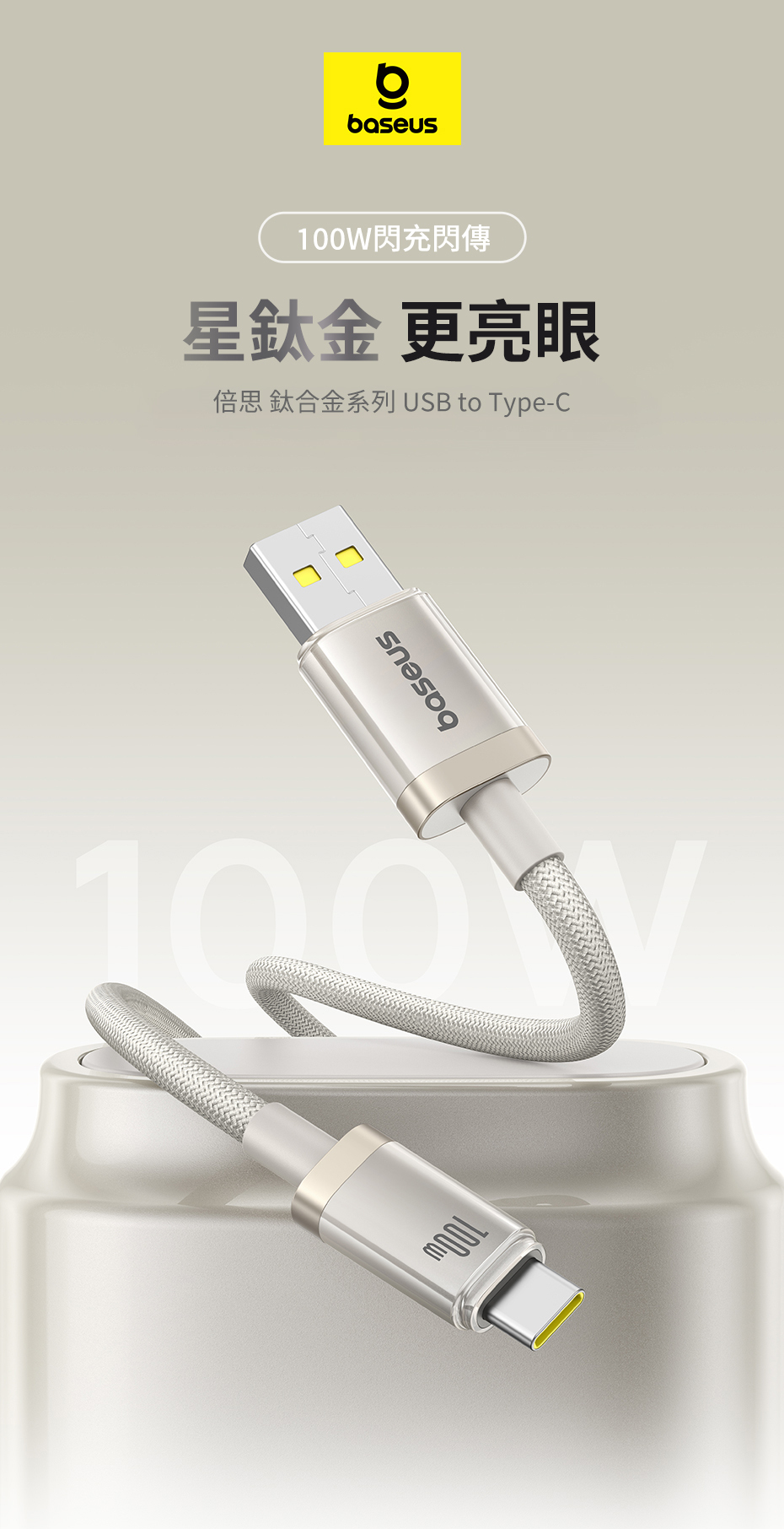 倍思 鈦合金系列 快充線 USB to Type-C 100W 1m (星鈦金)