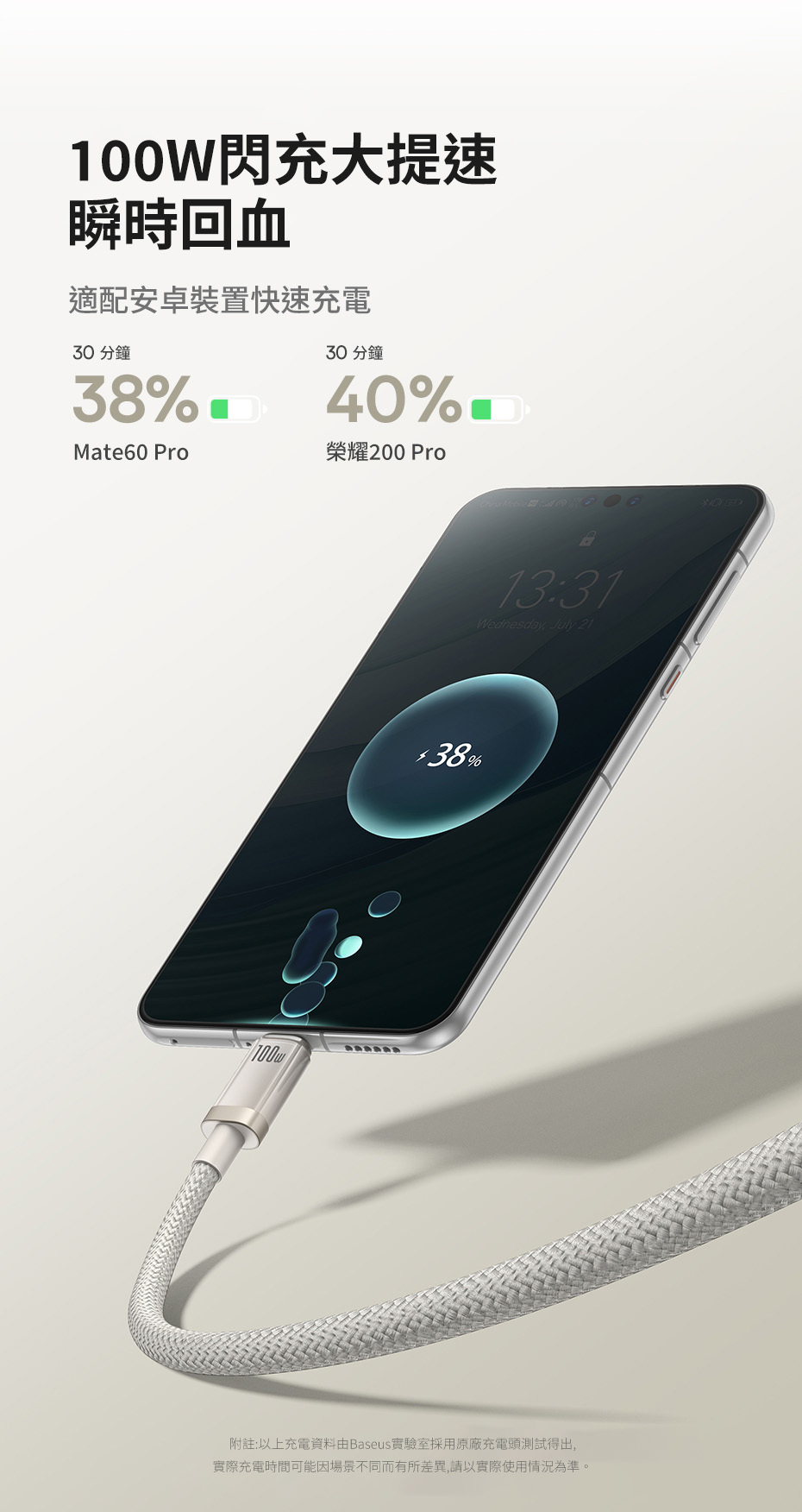 100W提升速率,手機、平板,都能充電
