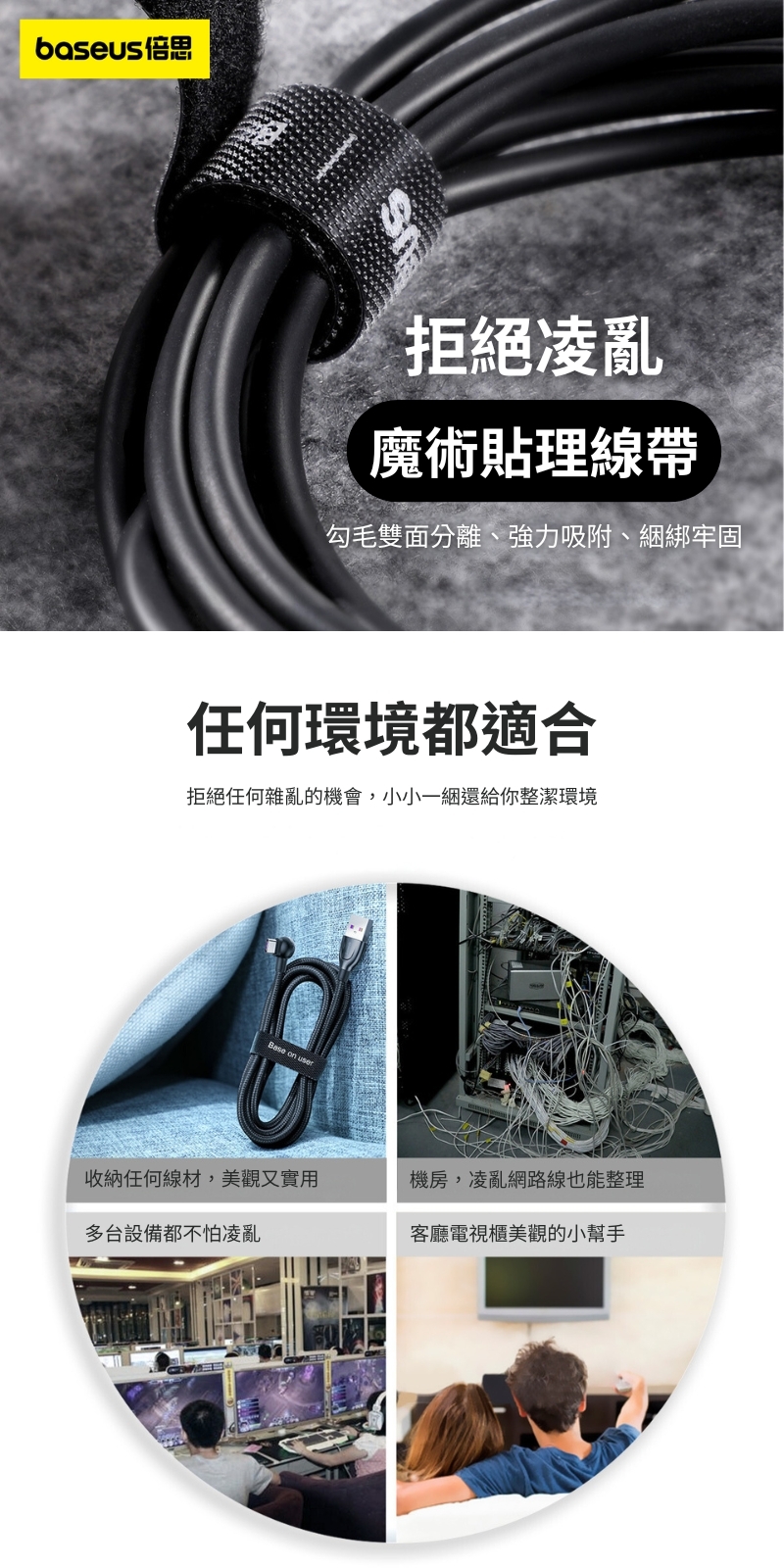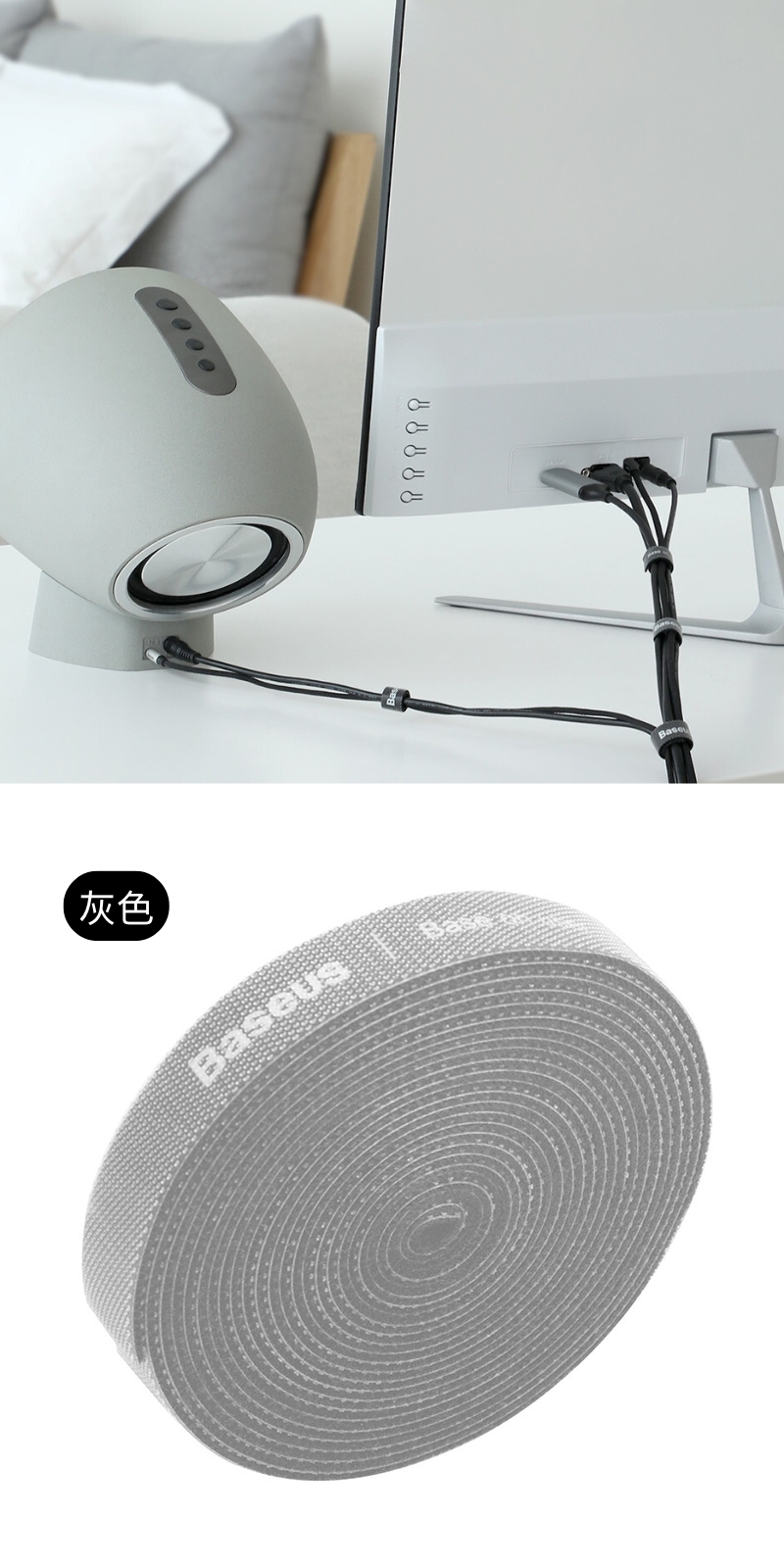 【倍思】多彩系列 線材收納魔術貼 捲線器 收納線材 3m 灰色 (ACMGT-F0G)